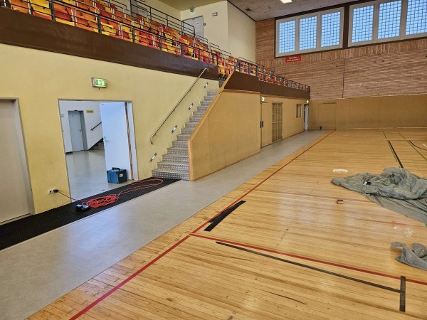 - 153 qm Sportboden maschinell grundreinigen und versiegeln